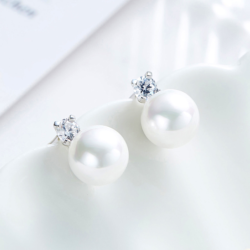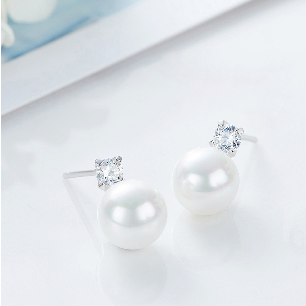 Aretes de plata S925 – Perla Brillante – Blanco